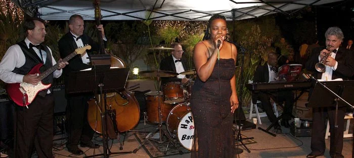 The Happiness Swing Band with guest singer Stormy Stokes playing for a 3000 -person event at the Hilton Universal City, California.